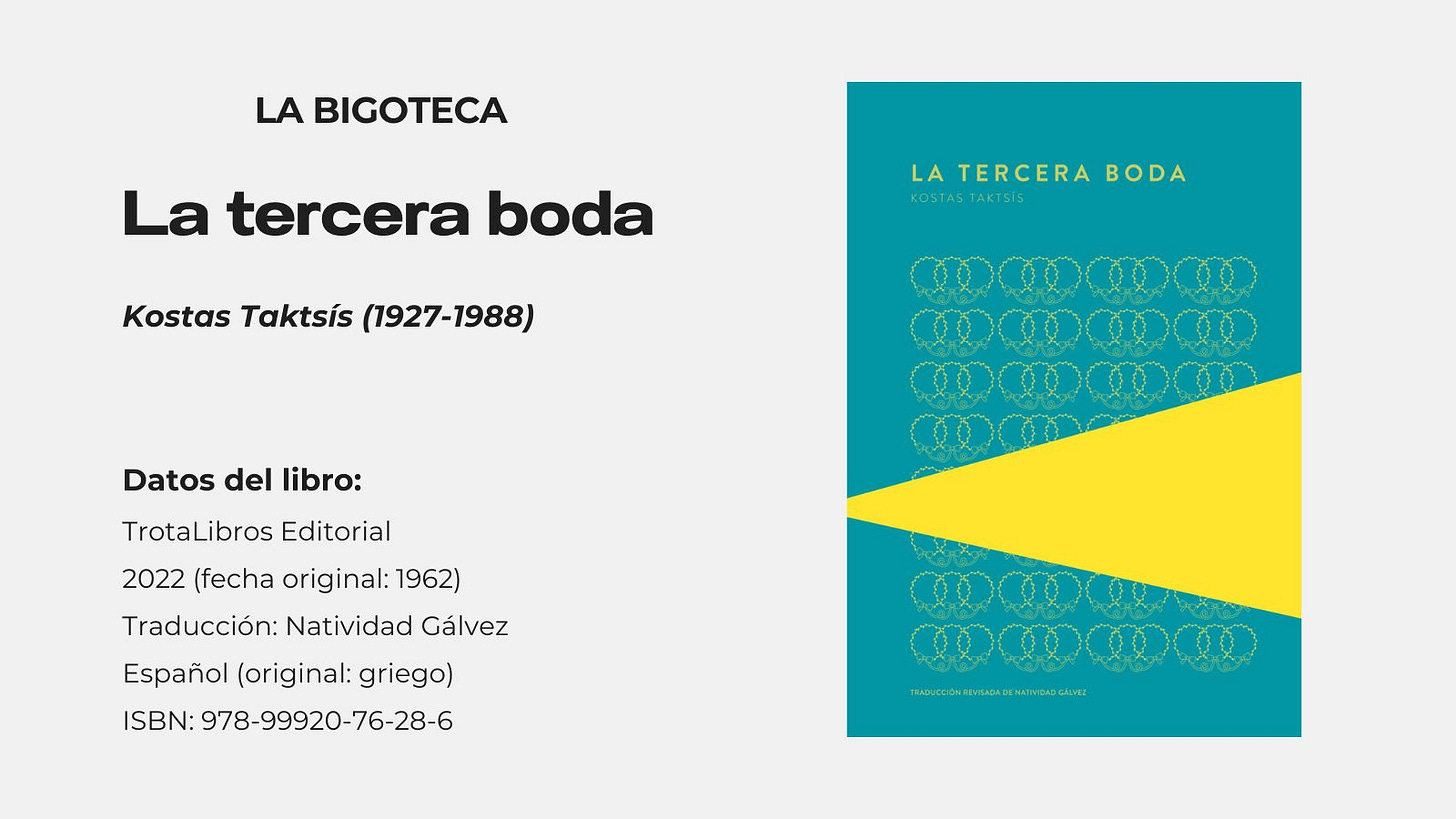 Así pues, si queréis un clásico de la literatura moderna griega traducido al español con el que conocer el contexto griego -tan brutal como interesante- de la primera mitad del siglo XX, La tercera boda es vuestra novela.